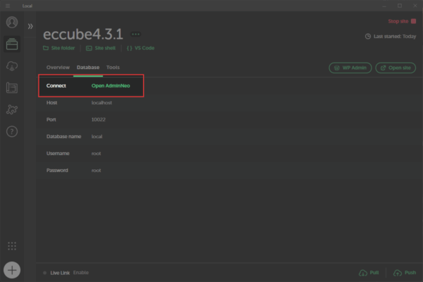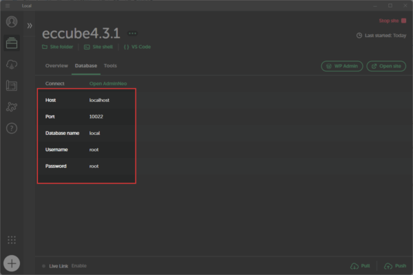 LocalはWordPress用の開発環境ソフトですが、PHPとデータベースがあるのでEC-CUBEを動かすことも可能です。