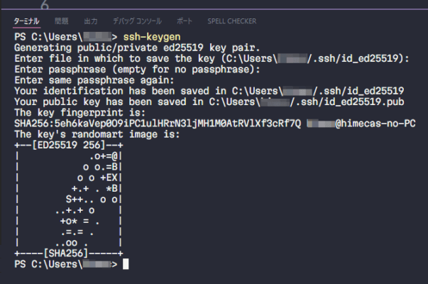 以下のように表示されたらSSHキーの作成完了です。